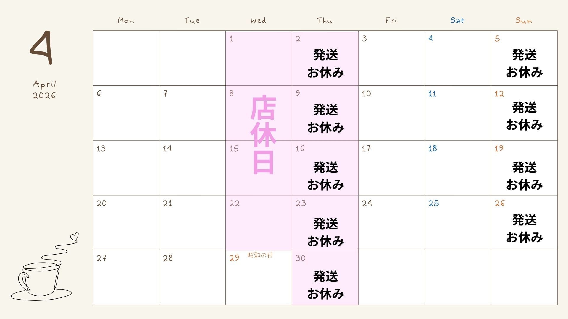 実店舗 定休日: 毎週水曜・木曜 発送休止日: 毎週木曜、日曜※ご注文は24時間承っております。店休日への店舗お問合せにつきましては営業開始日にご返信いたします