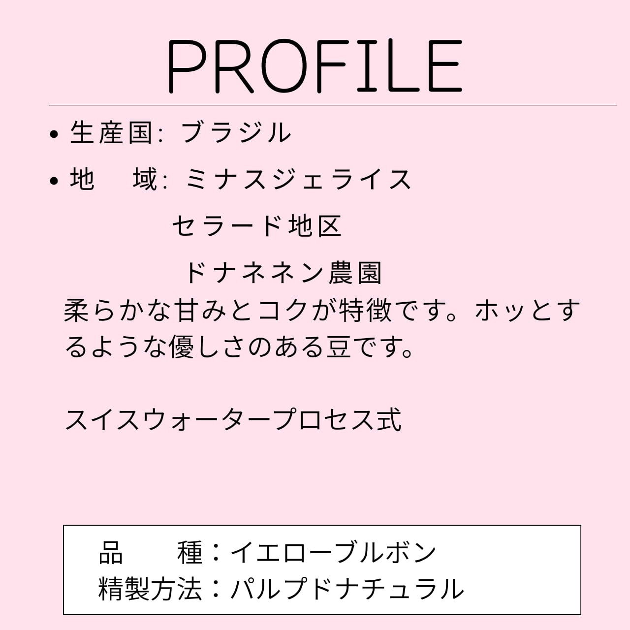 希少な黄色(アマレロ)のブルボン種。ナッツのような香ばしさと、デカフェとは思えない柔らかな甘みが広がります